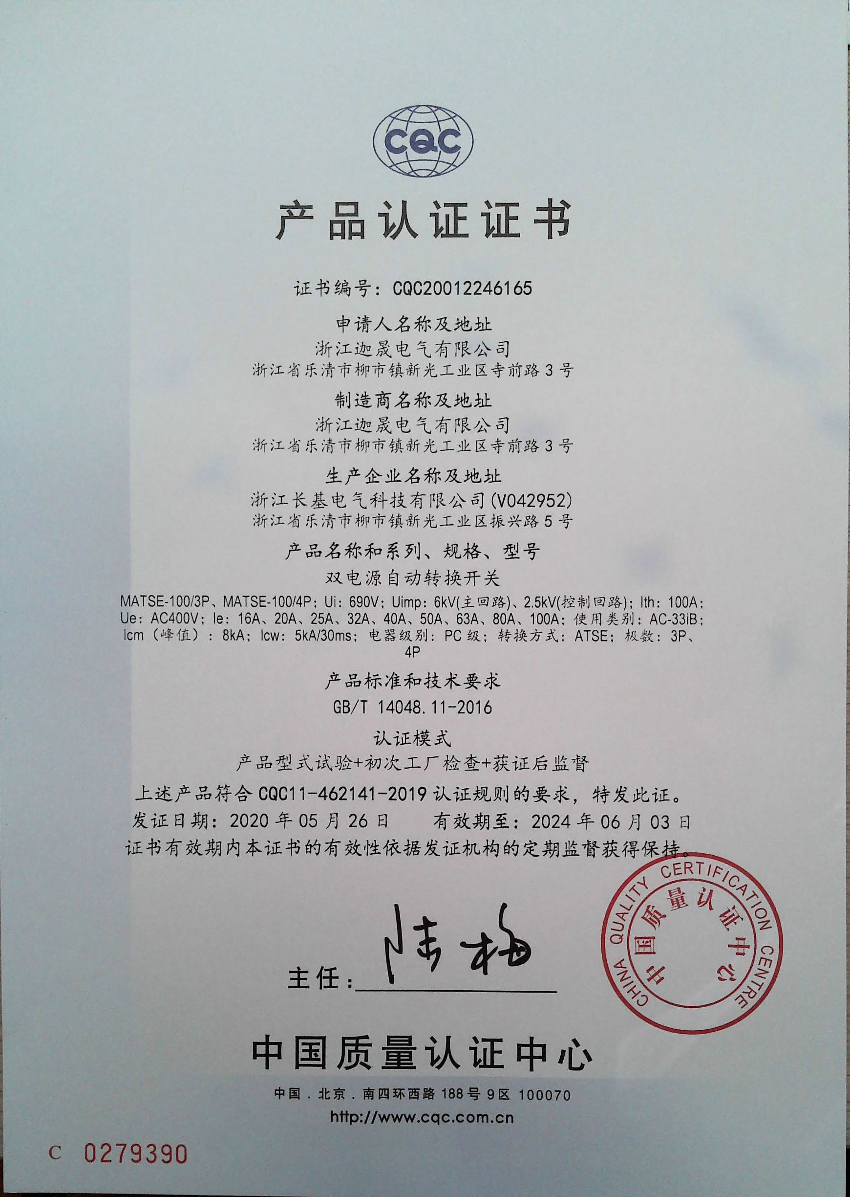 MATSG-100双电源CCC证书