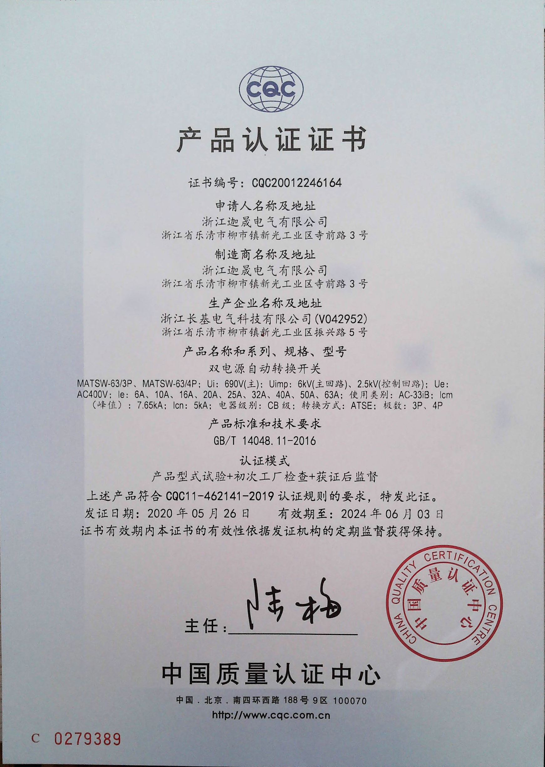 MATSW-63双电源CCC证书